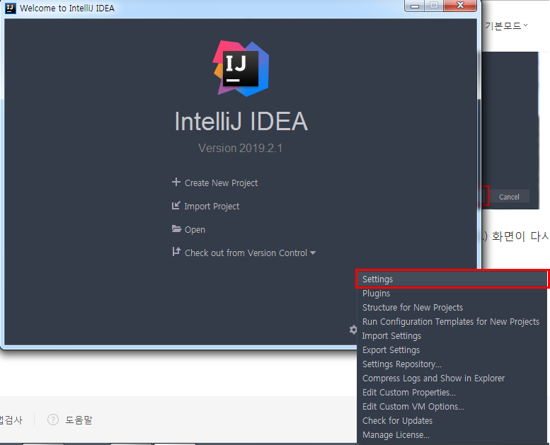 3. downloads를 받을 걸 이용해서 restart를 한다음에 (install을 하면 restart 메세지 창이 뜬다.) 화면이 다시 나오면 이번에는 settings 를 선택한다.