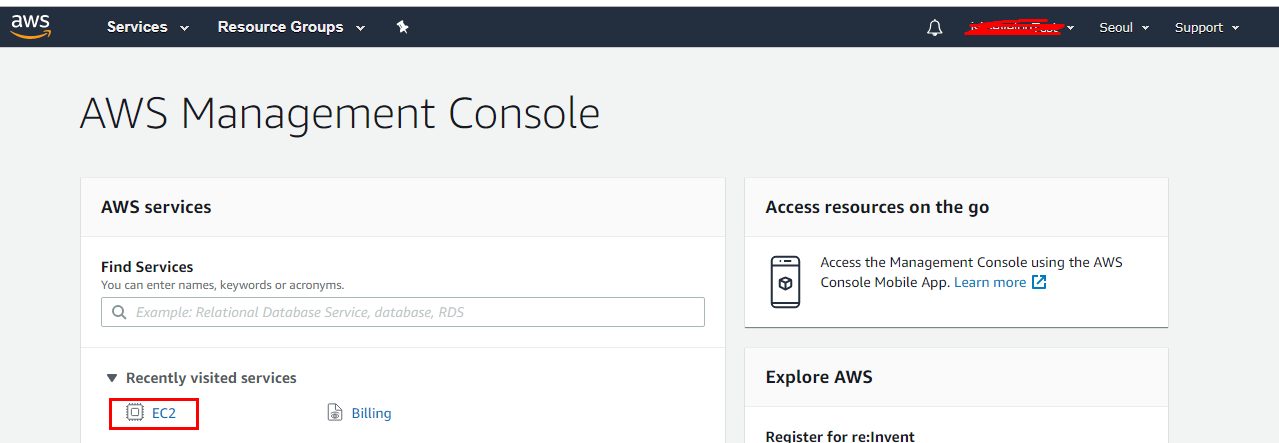 1. 우선 AWS Management Console 로 접근을 해 EC2를 클릭