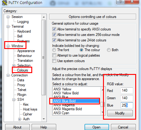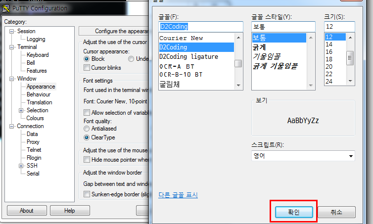 putty 터미널 색, 폰트 등 설정 바꾸기