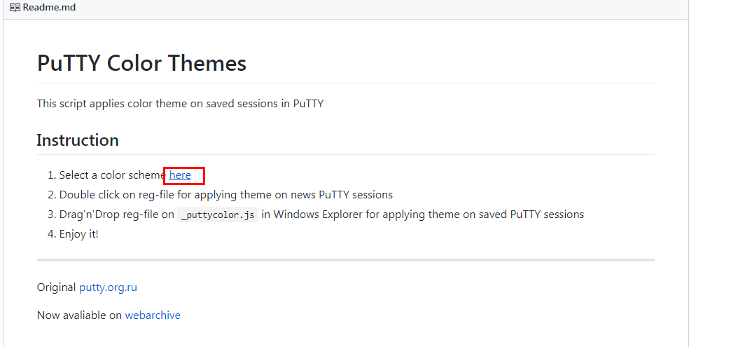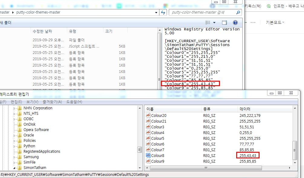 2. 해당 github에서 puTTy color 테마를 지정해 주는 부분이 있다. 해당 git에서 다운로드