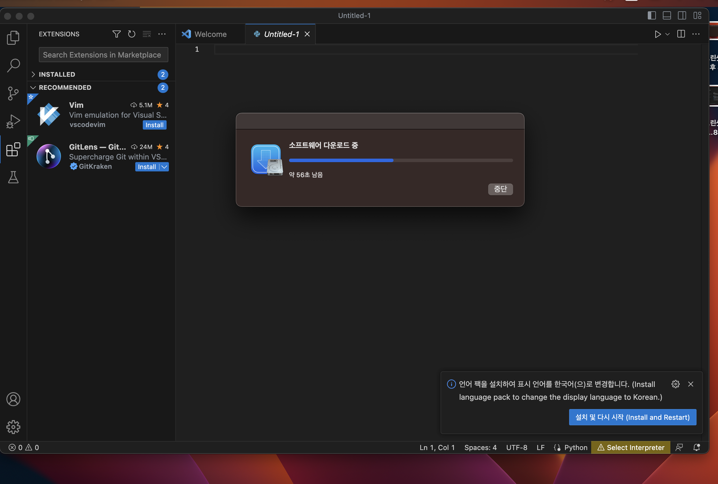 다른 사람들은 가장 아래 한국어로 변경되게 하지만 나는 영어 공부를 위해 vscode는 영어로 사용하기로 한다.