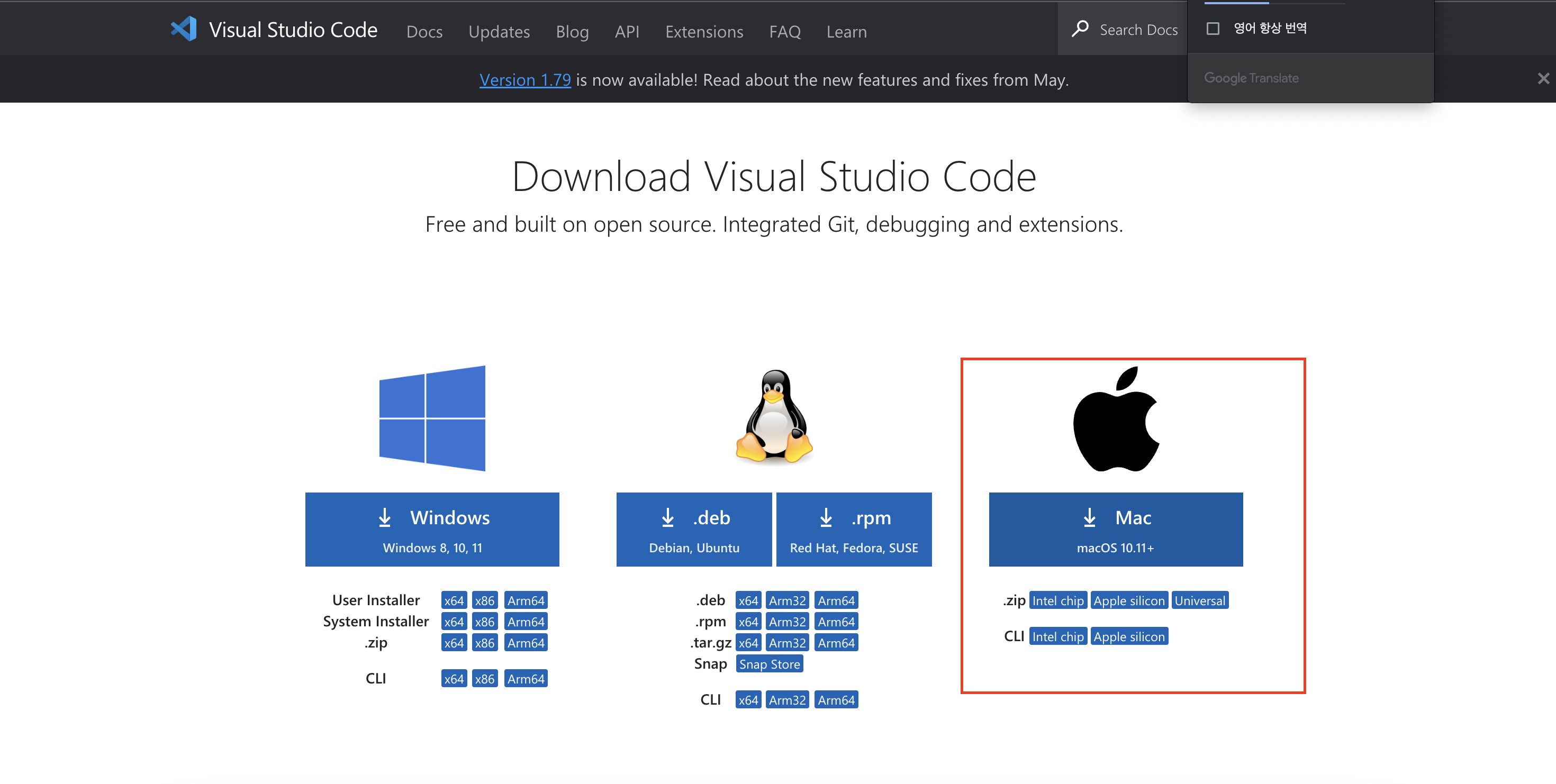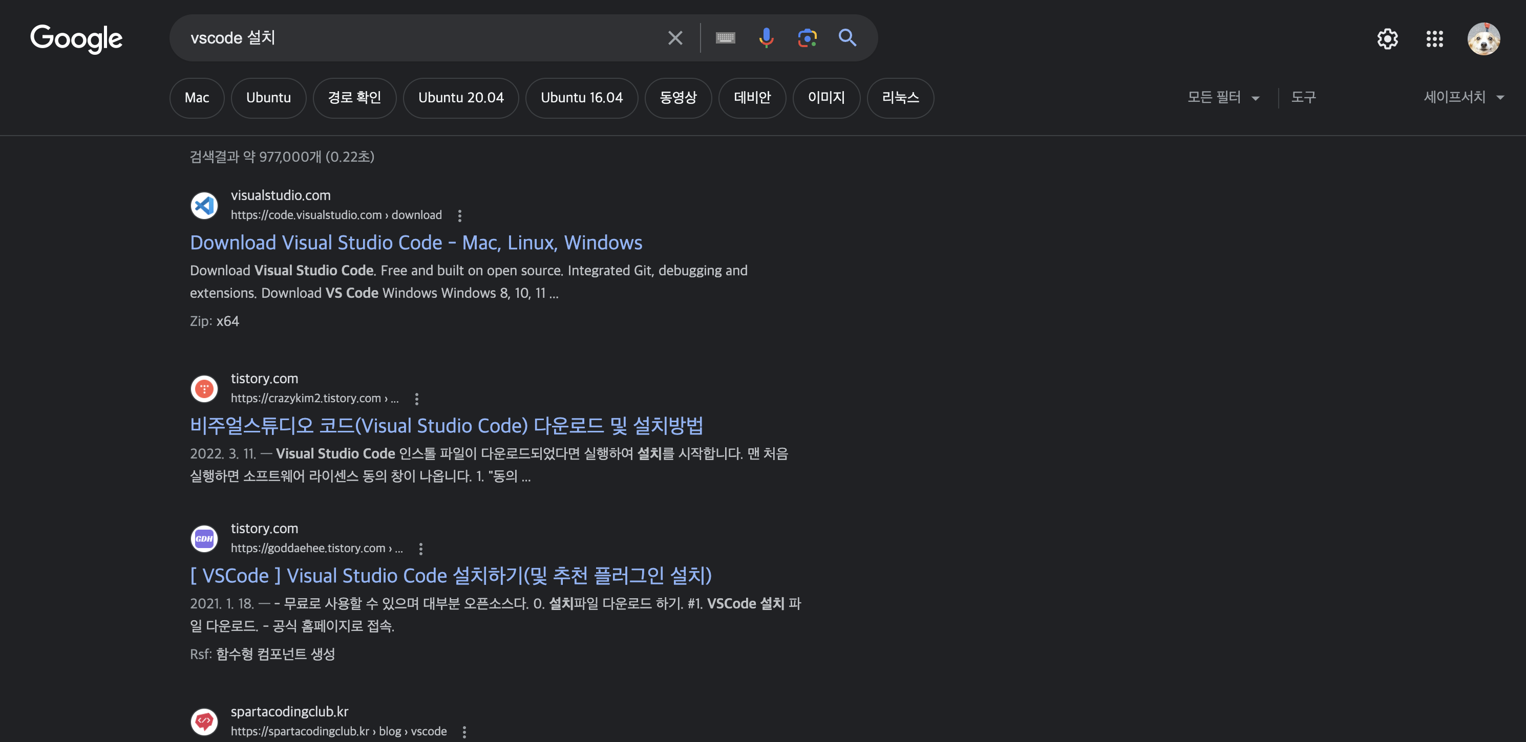 1. 구글에다가 해당 vscode 설치라고 쳐서 바로 첫번째 나오는 링크로 이동