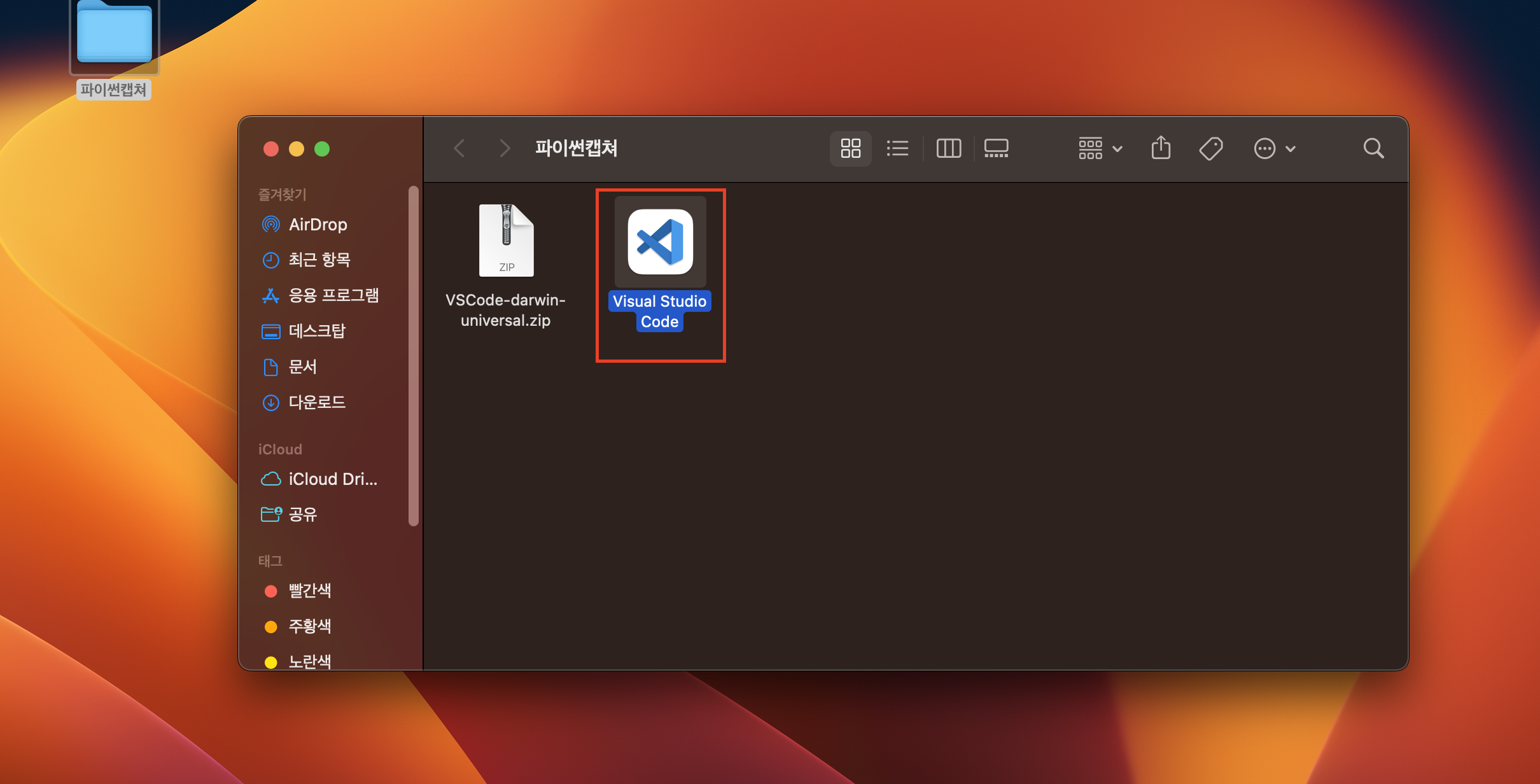 4.압축으로 되어있는 vscode를 풀어서 실행시킨다.